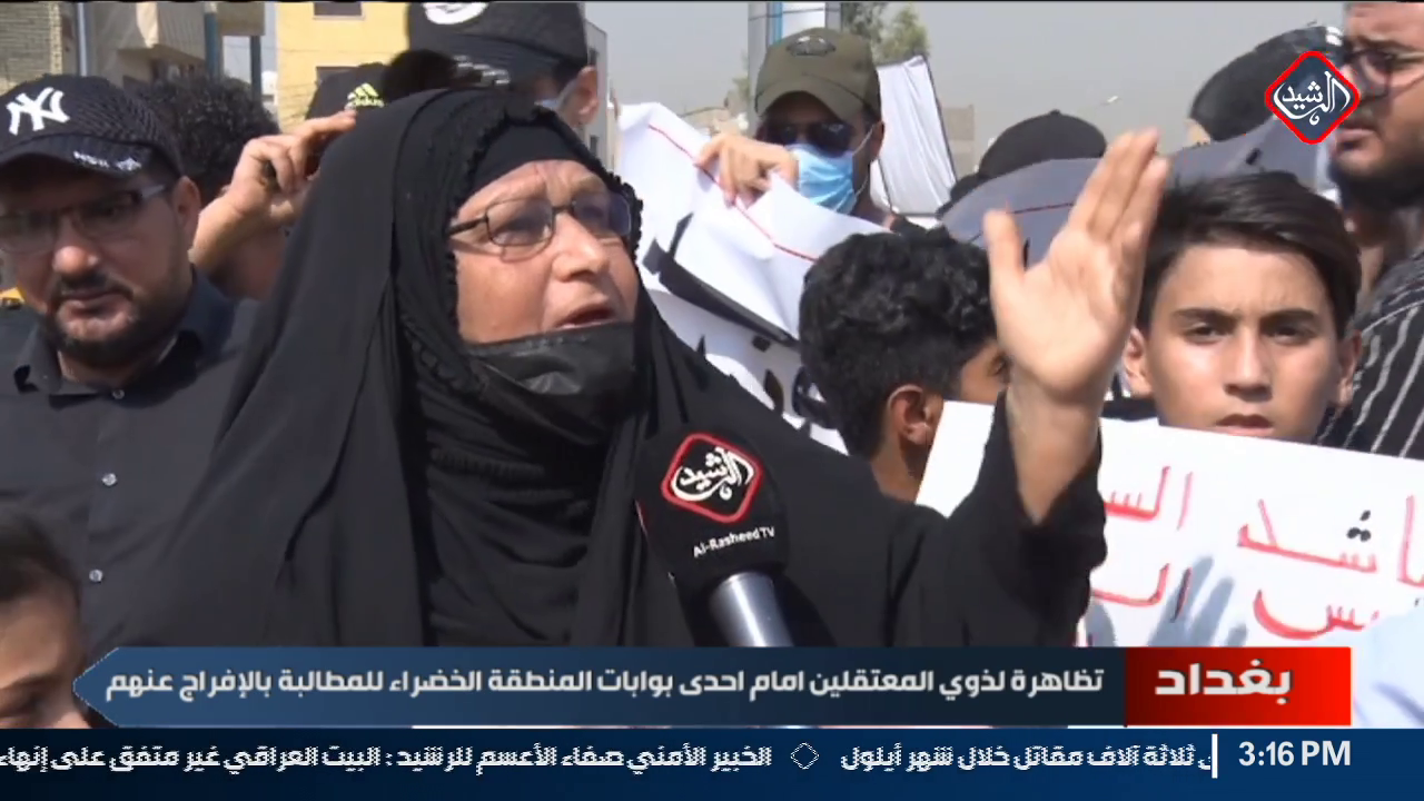 تظاهرة لذوي المعتقلين امام احدى بوابات المنطقة الخضراء للمطالبة بالإفراج عنهم