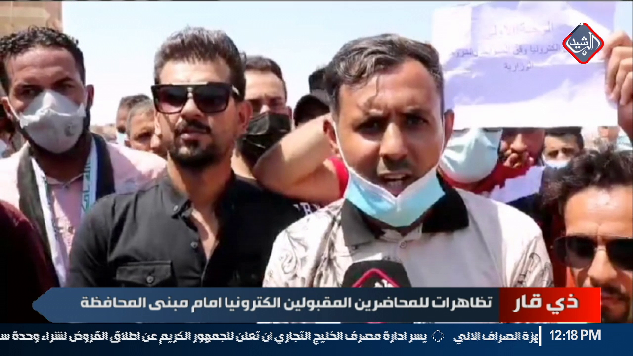 تظاهرات للمحاضرين المقبولين الكترونياً امام مبنى ذي قار