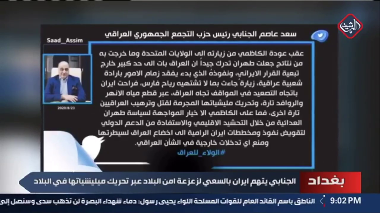 الجنابي يتهم إيران بالسعي لزعزعة أمن البلاد عبر تحريك ميليشياتها في البلاد