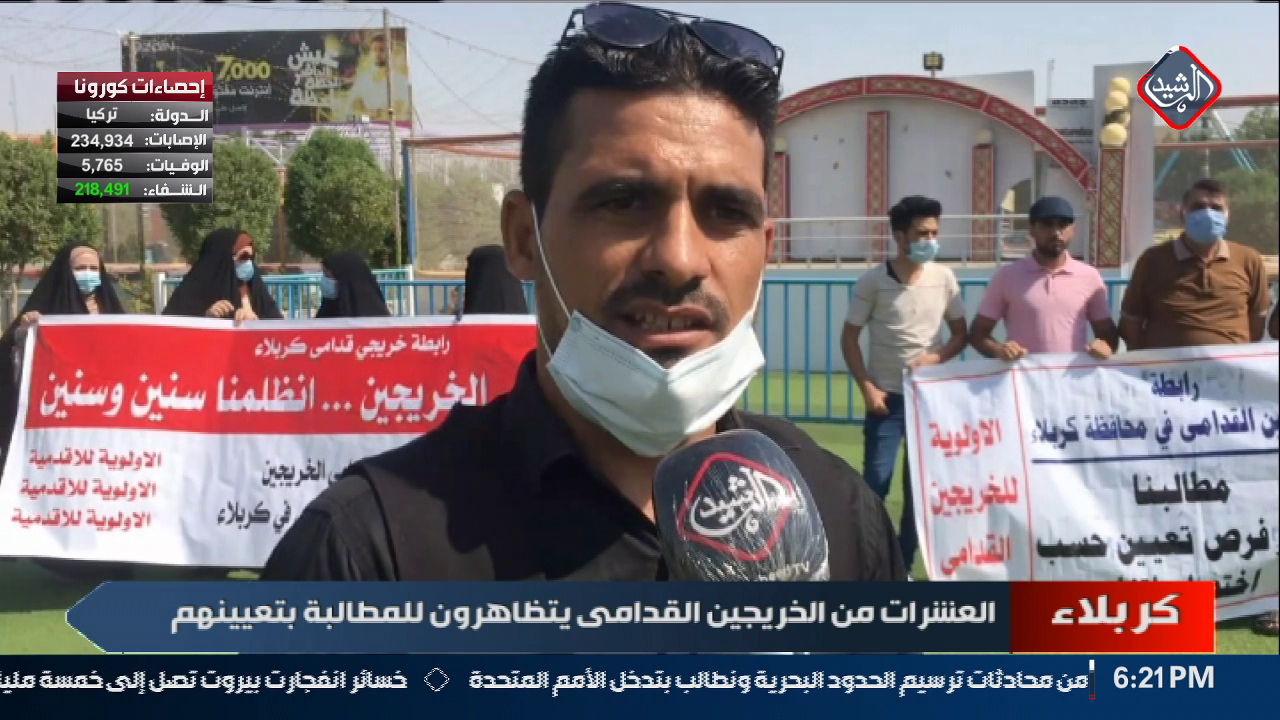 العشرات من الخريجين القدامى في كربلاء يتظاهرون للمطالبة بتعيينهم