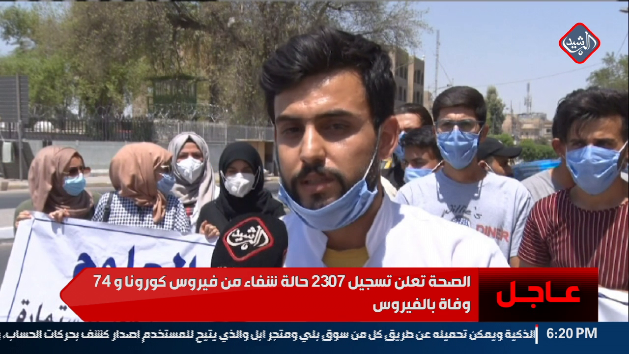 خريجو كليات العلوم يعتصمون امام وزارة الصحة للمطالبة بالتعيين