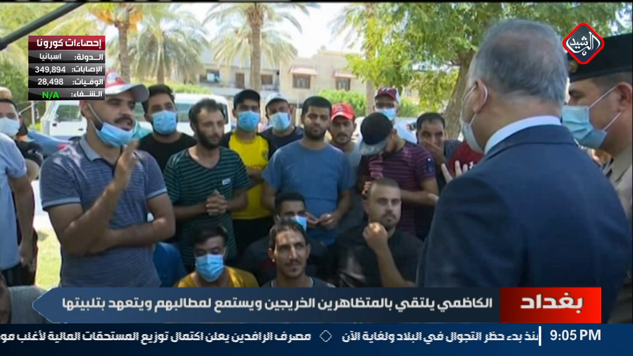 الكاظمي يلتقي بالمتظاهرين الخريجين ويستمع لمطالبهم ويتعهد بتلبيتها