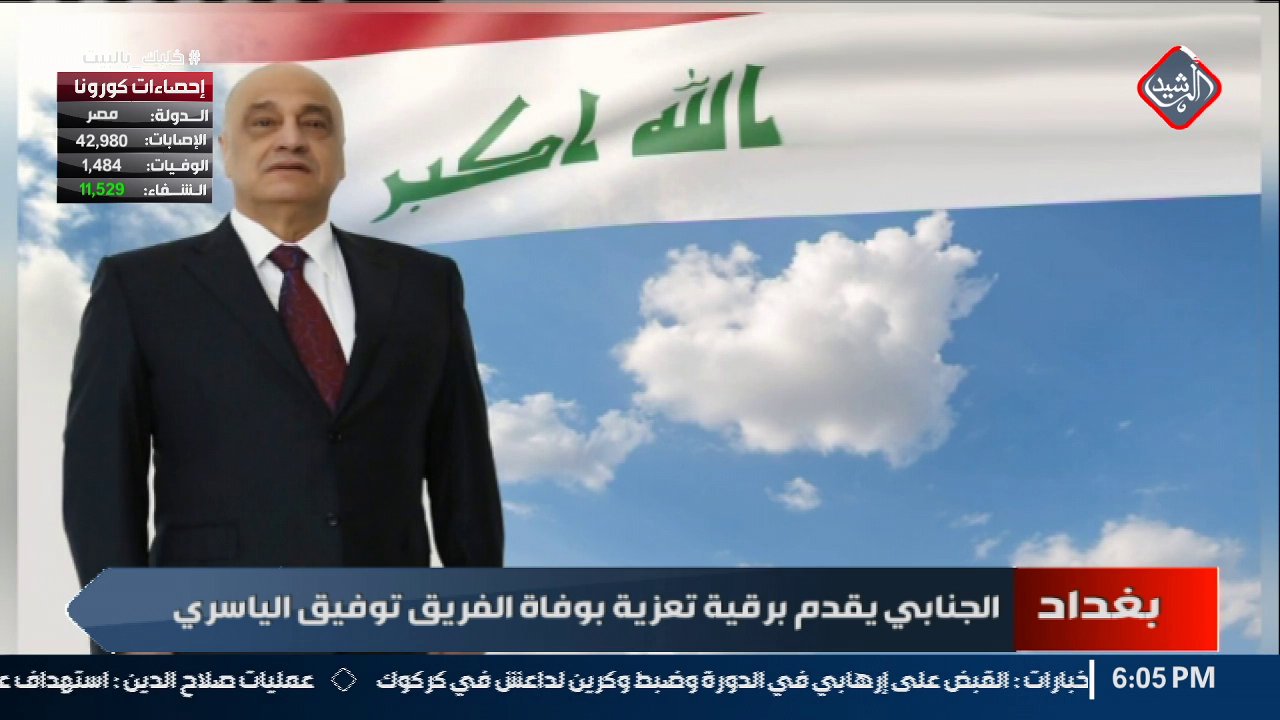 الجنابي يقدم برقية تعزية بوفاة الفريق توفيق الياسري