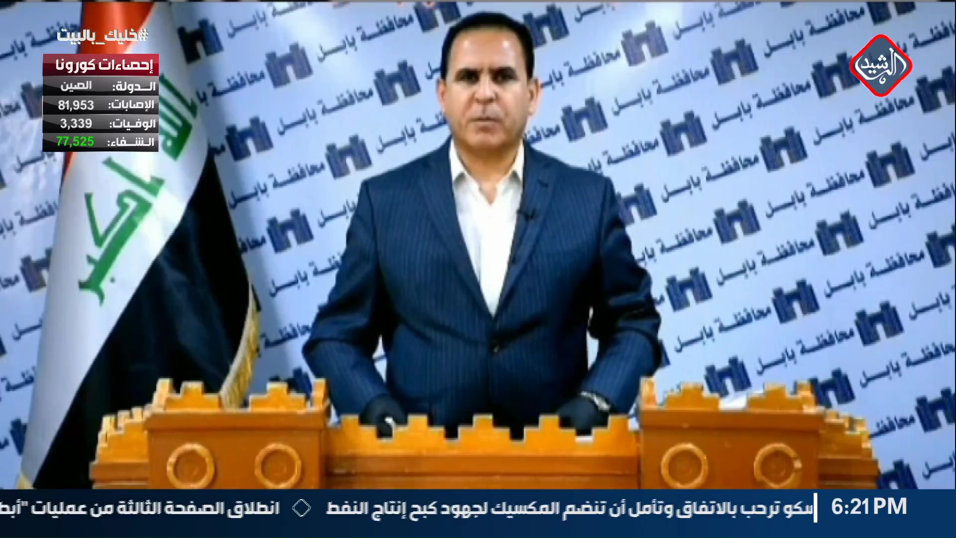 محافظ بابل يعلن خلو المحافظة من اصابات جديدة بالفايروس لليوم السادس على التوالي