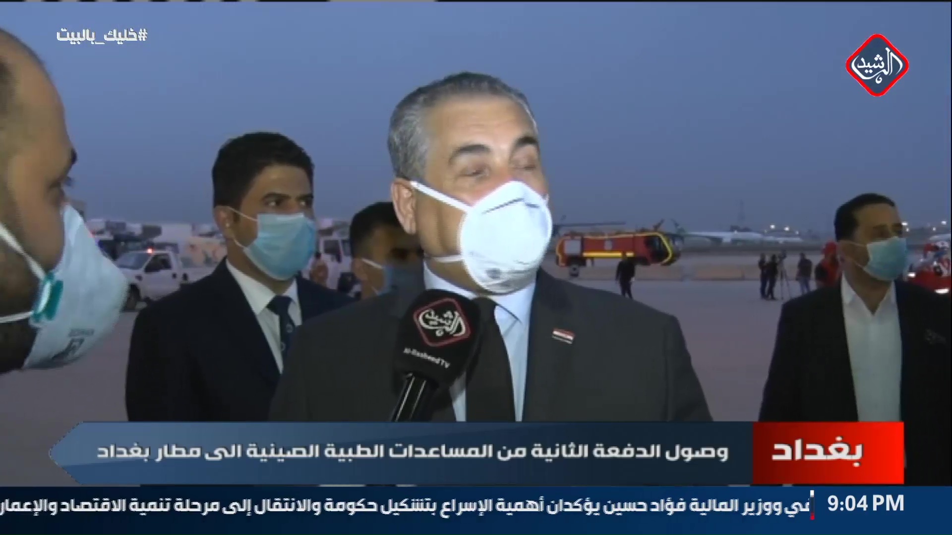 وصول طائرة الشحن التي تحمل الدفعة الثانية من المساعدات الطبية الصينية الى مطار بغداد