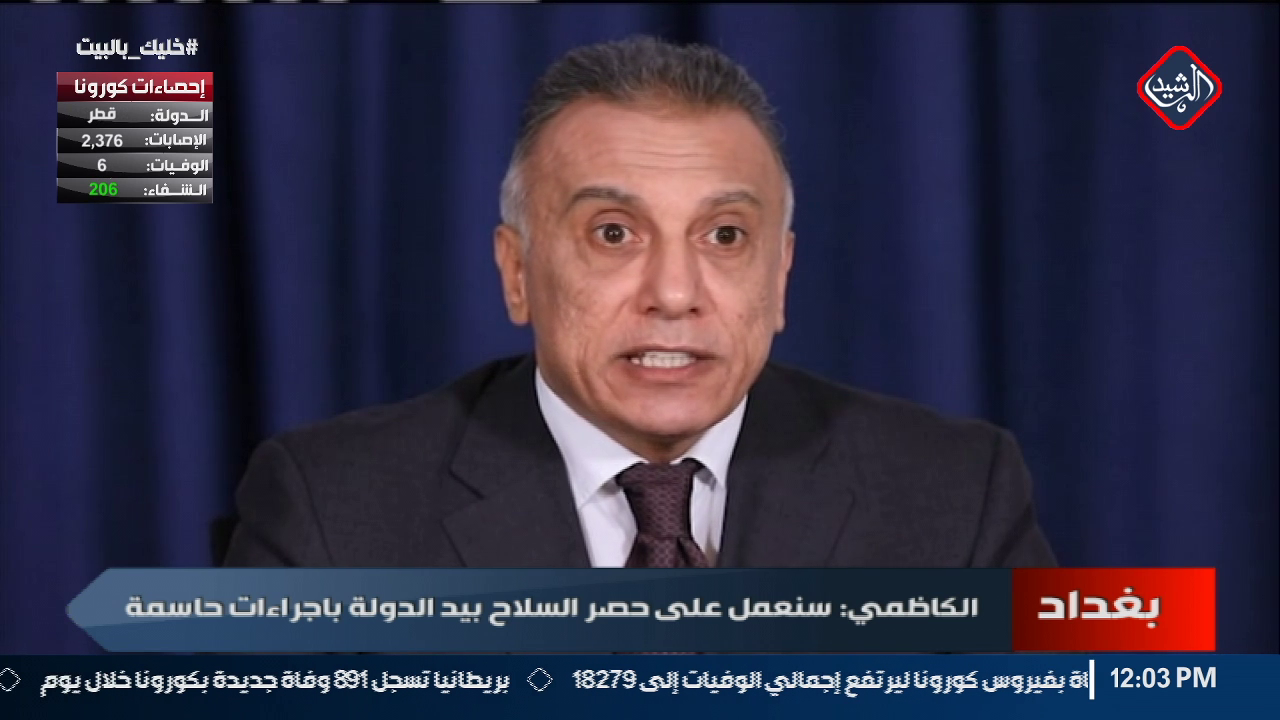 الكاظمي: سنعمل على حصر السلاح بيد الدولة باجراءات حاسمة