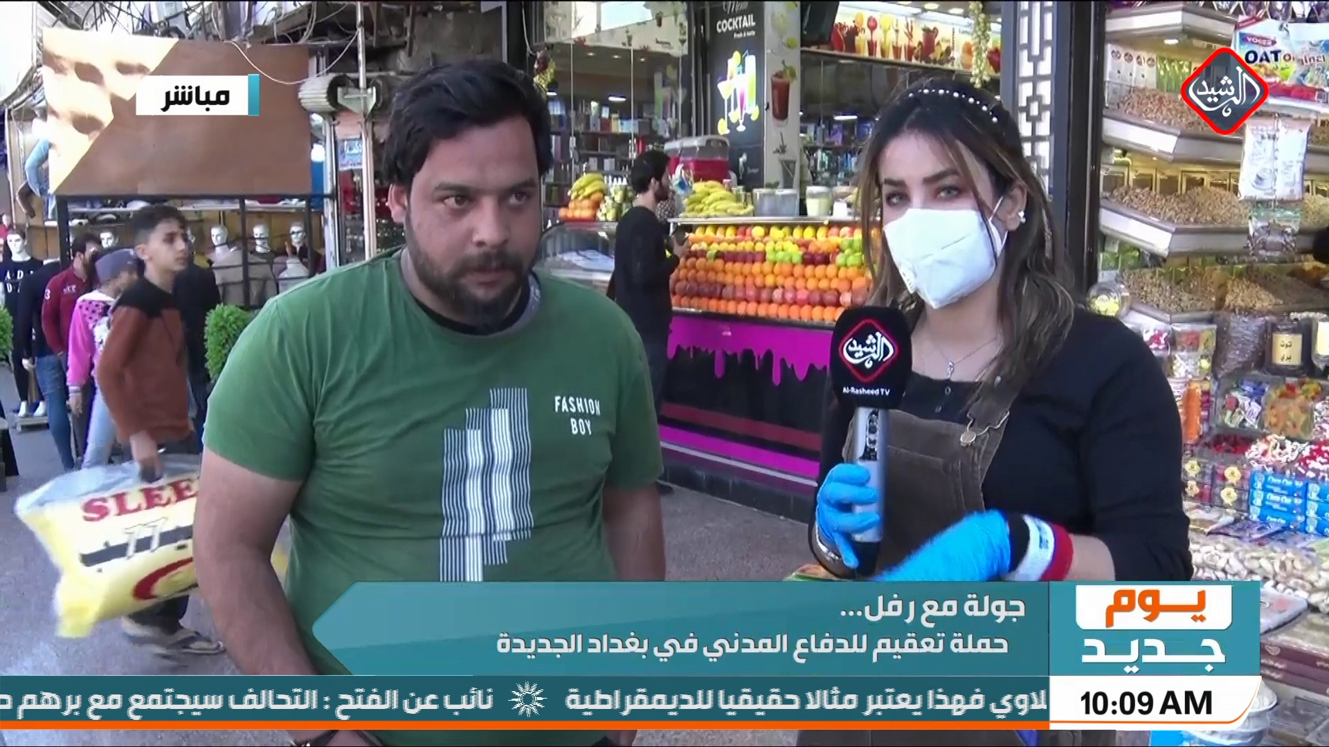 جولة مع رفل .. حملة تعقيم الاسواق في بغداد الجديدة من قبل الدفاع المدني