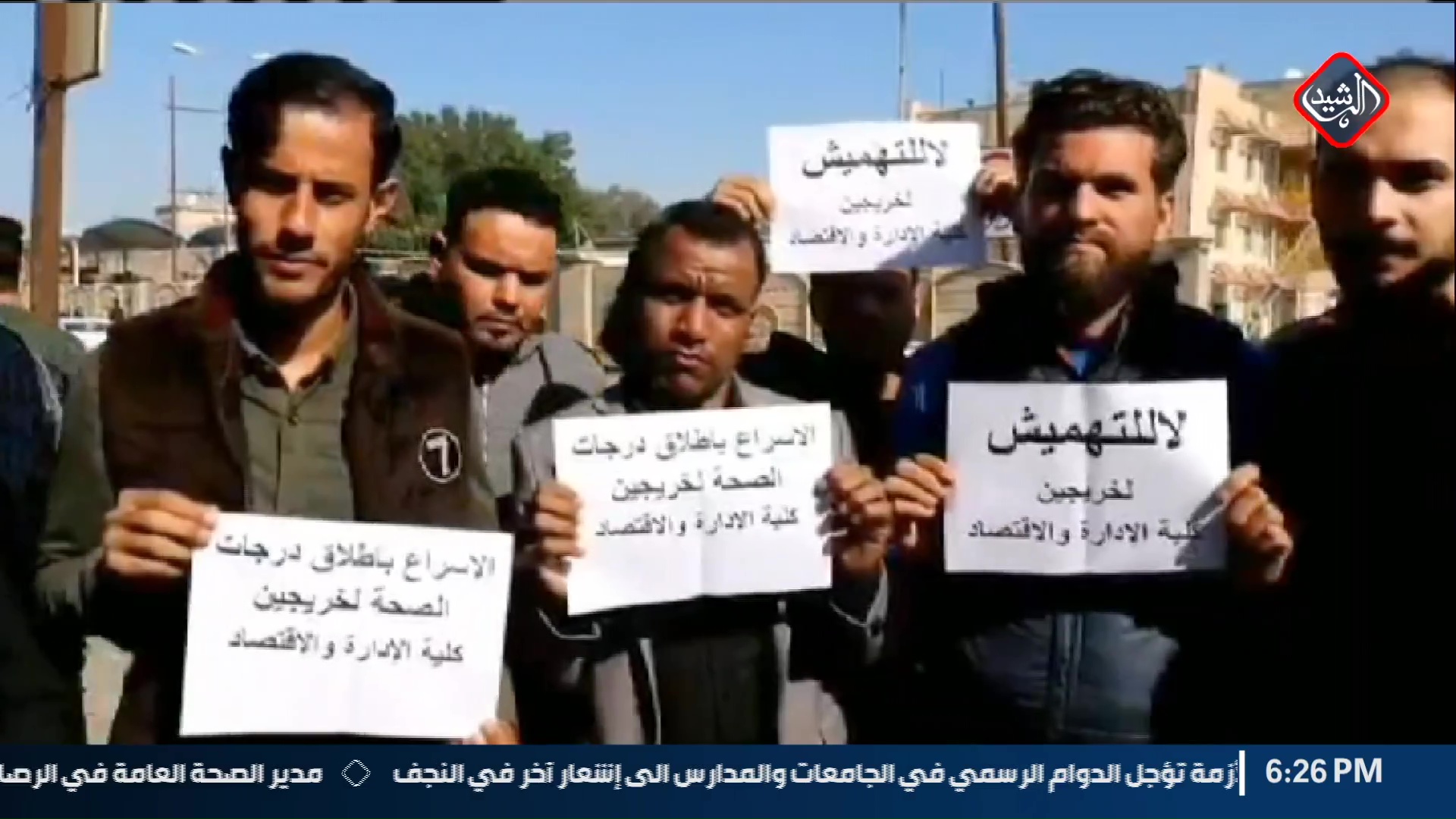 خريجو الادارة والاقتصاد في ذيقار يطالبون دائرة الصحة باطلاق الدرجات الوظيفية