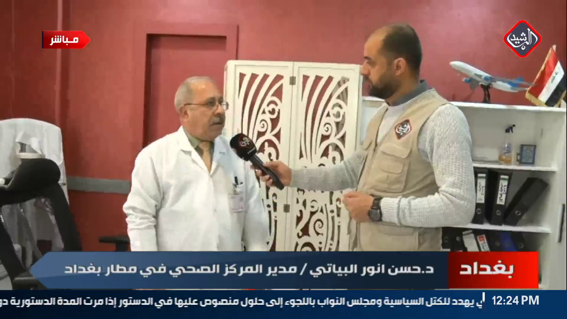 حول الاجراءات العراقية لمنع دخول فايروس كورونا للعراق .. مراسل الرشيد من داخل مطار بغداد