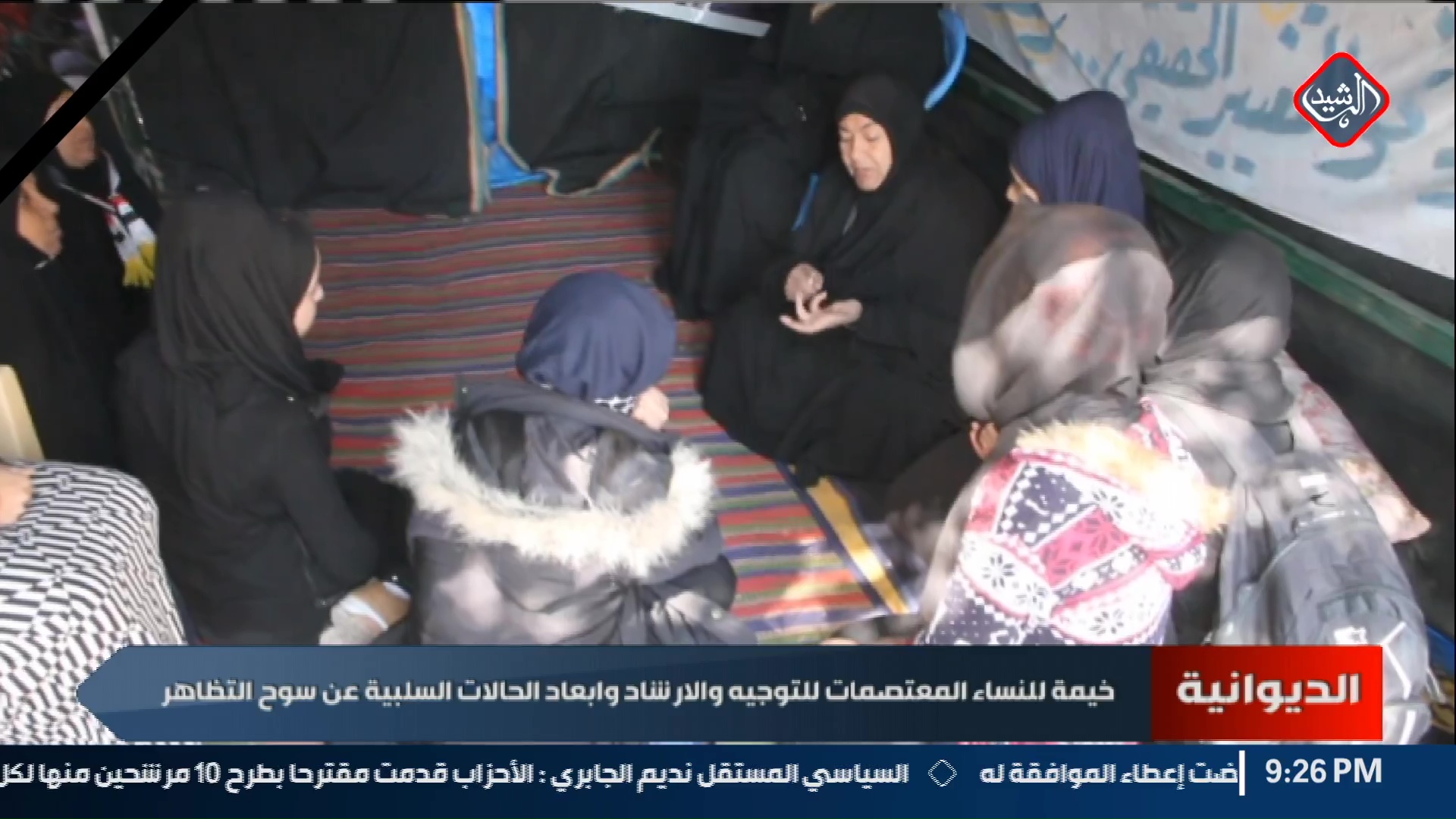 خيمة للنساء المعتصمات في الديوانية للتوجيه والارشاد وابعاد الحالات السلبية عن سوح التظاهر